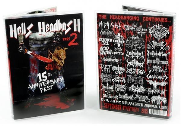 The DVD is a DOUBLE DISC set with a fold-out poster booklet featuring a massive live photo collage of bands plus a large photo spread of the graffiti banner covered with tons of signatures from those that attended the festival (see above image). HELLS HEADBANGERS is proud to present the long-awaited release of the Hells Headbash Part 2 DVDset. Shot over three days at the Cleveland Agora in September of 2015, this concert film chronicles the performances of 35 some of the most prolific bands in extreme metal today fromall around the globe, featuring the likes of Archgoat (Finland), Destruktor (Australia), Deiphago (Philippines), Deathhammer (Norway), Cianide (Chicago), Midnight (Cleveland), Satanic Warmaster (Finland) and many more! More than just a low-budget video, HellsHeadbash Part 2 is a concert film, professionally shot and edited in sequence to give it a sense of narrative, documenting while not being an informative documentary, but more like the metal facsimile of something like the Woodstock film. It follows the first 'bash DVD, even featuring return performances by Midnight and Acid Witch, but ups the ante with a much taller line-up and running time, among other things. Released as a double disc collectors set with a running time around 2 hours and 45 minutes, watching the film is definitely an event, bringing the nonstop action of the 2015 weekend into your living-room and invading your personal space. With handpicked performances selected from over 120 hours of compiled footage, Found Objects And Dreams productions carefully put together the best representation possible for an event in space and time that can never be relived or redone. DISC 1 TRACK LIST: 1. The LURKING CORPSES - Night At The Grindhouse 2. PROSANCTUS INFERI - Apex Jaws In Madrigal Posture 3. CEMETERY LUST - Black Angels Of Hell 4. ABYSMAL LORD - Sermon Of Fire 5. BAT - Primitive Age 6. BONEHUNTER - Turn Up The Evil 7. BLOOD FEAST - Blood Lust 8. ACID WITCH - Witchblood Cult 9. HIGH SPIRITS - Wanted Dead 10. OCTOBER 31 - Salem's Curse 11. CIANIDE - Rage War 12. CIANIDE - Envy and Hatred 13. MIDNIGHT - White Hot Fire 14. MIDNIGHT - You Can't Stop Steel 15. EMBALMER - Morbid Confessions 16. HELLVETRON - Abaddon 17. The HAUNTING PRESENCE - Continuously Assaulted By Spirits 18. EVIL ARMY - Conquer Human Life 19. SACROCURSE - Command Demonic Prayers 20. DECEASED - The Premonition DISC 2 TRACK LIST: 21. PERDITION TEMPLE - Chambers Of Predation 22. DEIPHAGO - Serpentine Antiworld 23. DESTRUKTOR - Hail The Black Goat 24. SATANIC WARMASTER - Raging Winter 25. SATANIC WARMASTER - Vampiric Tyrant 26. PROFANATICA - Weeping In Heaven 27. PROFANATICA - Once Removed Savior 28. GRAVEWURM - Mistress Of Blood And Fire 29. MANTICORE - Feast Of The Beast 30. NEXUL - N.X.L.Z.F.R. 31. NOCTURNAL BLOOD - Invocation of Spirits 32. AEVANGELIST - Halo Of Lamented Glory 33. DEMONIC CHRIST - Bound To Damnation 34. SHITFUCKER - Black Mold 35. DEATHHAMMER - Total Metal 36. NYOGTHAEBLISZ - Bioterroristic Holocaust 666 37. INQUISITION - Infinite Interstellar Genocide 38. BLACK WITCHERY - Into Damnation Eternal 39. BLACK WITCHERY - Inferno Of Sacred Destruction 40. ARCHGOAT - Nuns, Cunts and Darkness 41. ARCHGOAT - Hammer Of Satan 42. ARCHGOAT - Grand Luciferian Customers who bought this items also bought these:
